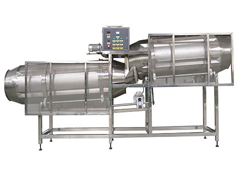 3. 雙滾筒用于先在滾筒的進料端噴油,之后再在表面撒調味料,要求油料分離的情況,適合生產高檔產品。