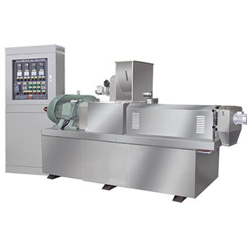物料在機筒中經過螺桿的擠壓剪切和混煉,物料在高溫高壓下充分熟化經出口模具膨化,形成各種形狀的食品。
